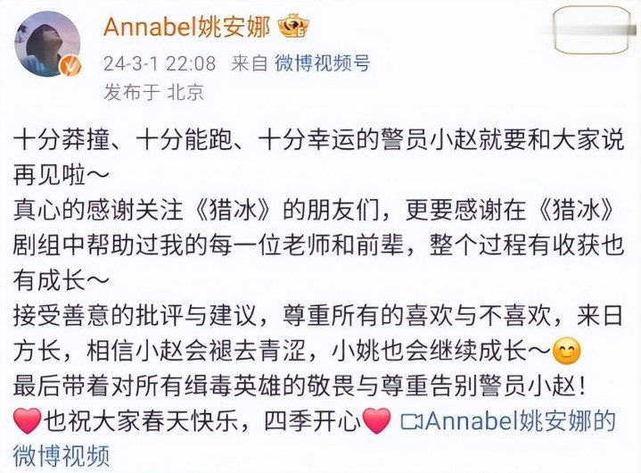 就在行业与观众逐渐认可姚安娜的演技时,姚安娜又在不经意间带来了一则全新的重磅喜讯。